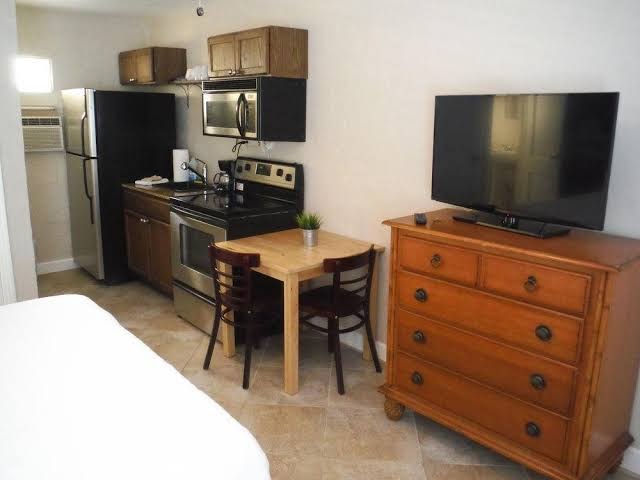1st of all Maria the Manager was great, and we had so much fun staying there. It's quite a hidden place with only 10 rooms and our room was very clean, small bathroom with shower, but it worked for us just fine. The back patio was wonderful, and we enjoyed many morning sun rises and then just cross the road is the beach to enjoy the evening sunset!!! Public's Grocery less than a block away and many other restaurants close by. Everything is in walking distance, so bring some good walking shoes. Again, my Wife and I Loved it!!!